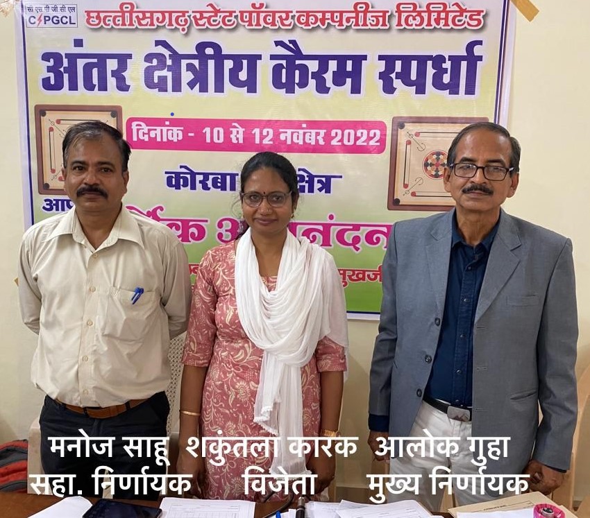 अंतर क्षेत्रीय कैरम स्पर्धा दिनांक 10 नवम्बर से 12 नवम्बर 2022 तक कोरबा पूर्व क्षेत्र की मेज़बानी में सीनियर क्लब डॉ.श्यामा प्रसाद मुखर्जी ताप विद्युत गृह कोरबा(पूर्व )में आयोजित हो रही है। इस स्पर्धा में आज दूसरे दिन सीनियर क्लब सी॰एस॰ई॰बी॰ के हॉल में महिला वर्ग के डबलस मुक़ाबले में रायपुरसेंट्रल एवं दुर्ग क्षेत्र के मध्य फ़ाइनल मैच खेला गया। जिसमें रायपुर सेंट्रल की नमिता जैन एवं कंचन महेश ठाकुर की जोड़ी ने दुर्ग की शकुन्तला कारक एवं अनीता रुही को कश्मकश भरे मैच में टेबल नम्बर 7 में खेले गये सीधे सेट में आठ बोर्ड की कालावधि में 18-10 अंको के अन्तर से पराजित कर विजेता का ख़िताब जीता। इस मैच की पेनल एंपायर संध्या रानी थीं।