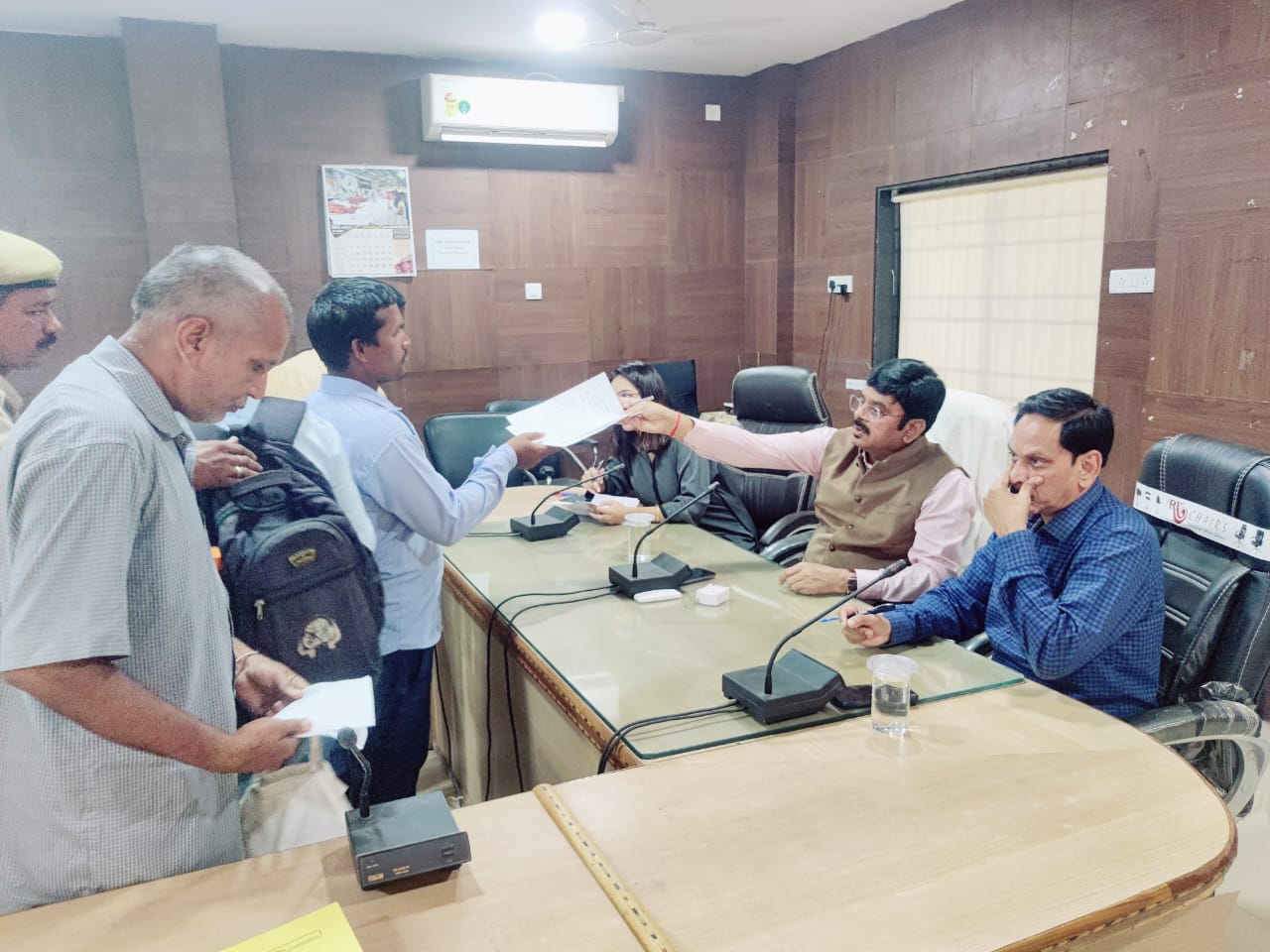 बेमेतरा 16 नवम्बर I कलेक्टर जितेन्द्र कुमार शुक्ला ने आज मंगलवार को आयोजित साप्ताहिक भेंट मुलाकात जन चौपाल कार्यक्रम के दौरान जिले के दूर-दराज क्षेत्रों से आए ग्रामीणों से रू-ब-रू होकर उनकी समस्याएं सुनी। इस दौरान नागरिकों ने उनसे मुलाकात कर अपनी समस्याओं, शिकायतों एवं मांगों से अवगत कराया। जिलाधीश ने सभी आवेदनों का अवलोकन कर शीघ्र निराकरण करने संबंधित अधिकारियों को समय-सीमा के भीतर निराकरण कर नियमानुसार कार्रवाई करने के निर्देश दिए। कलेक्टर जन-चौपाल में आज विभिन्न विभागों से संबंधित समस्याएं, मांग एवं शिकायत के 62 आवेदन प्राप्त हुए।