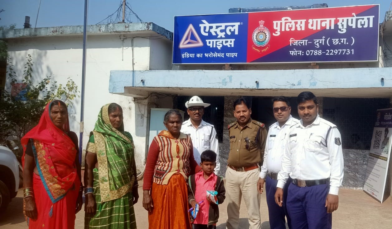दुर्ग ,25 दिसंबर I को सुपेला कृष्णा नगर निवासी शुभांगन देवी साहू अपने 6 वर्ष नाती दीपेश साहू के साथ पंडरिया से वापस अपने निवास आ रही थी तभी दुर्ग पहुंचने पर उक्त बस से उतरने के बाद समान निकालने पीछे डिक्की की ओर गई इतने में ही वह बालक अपनी नानी को खोजते हुए दुर्ग से रायपुर जाने वाली बस पर बैठ गया तभी बालक की नानी के द्वारा बच्चे को आसपास खोजने लगी उसी समय 10 मिनट पश्चात एक अन्य बस चालक द्वारा नेहरू नगर चौक पर ड्यूटी पर तैनात आरक्षक गोपेश देशमुख को उक्त घटना की जानकारी दी गई आरक्षक के द्वारा तत्परता दिखाते हुए उक्त घटना की जानकारी अपने वरिष्ठ अधिकारी सतीश ठाकुर उप पुलिस अधीक्षक (यातायात) को बताया गया तभी वरिष्ठ अधिकारी द्वारा मुख्यालय को पॉइंट देकर सभी टैंगो एवं पेट्रोलिंग को उक्त बालक को खोजने हेतु पॉइंट दिया गया इतने में ही वह बालक मालवीय नगर चौक के पास खड़ा है सूचना मिली तभी पेट्रोलिंग पार्टी में तैनात आरक्षक महेश यादव ,राहुल सोनी एवं ओमप्रकाश तिवारी को तथा राजेंद्र प्रसाद चौक पर ड्यूटी में तैनात आरक्षक भूदेव सेठ के द्वारा बच्चे को अपने सुपुर्द लिया गया और बालक को सुपेला थाना में बालक के नानी के सुरक्षित सुपुर्द किया गया।