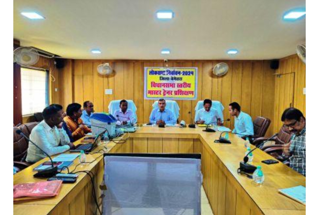 बेमेतरा। लोकसभा आम निर्वाचन -2024 को लेकर कलेक्टर रणबीर की उपस्थित में आज यहां कलेक्ट्रेट के दिशा सभाकक्ष में ज़िले की तीनों विधानसभावार मास्टर ट्रेनर को ज़िला स्तरीय मास्टर ट्रेनरों के द्वारा प्रशिक्षण दिया जा रहा है।