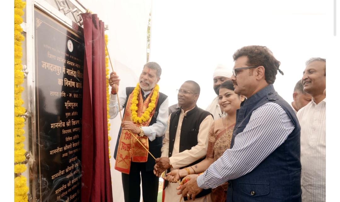 जगदलपुर । शहर में प्रतियोगिता परीक्षा की तैयारियों के लिए सर्व सुविधायुक्त लाइब्रेरी का निर्माण किया जाएगा। रायपुर की तर्ज पर शहर में भी नालंदा शिक्षा केंद्र का निर्माण के लिए शुक्रवार को विधायक किरण देव ने भूमि पूजन किया। एक साथ हजार सदस्यों की बैठक व्यवस्था के साथ पढ़ाई की सुविधा क्षमता वाले नालंदा परिसर का निर्माण लगभग 9 करोड़ 98 लाख की लागत से किया जा रहा है। नालंदा शिक्षा केंद्र का निर्माण जिला पंचायत कार्यालय के समीप किया जाएगा। इस अवसर पर महापौर श्रीमती सफीरा साहू, नगर निगम नेता प्रतिपक्ष संजय पांडेय,गणमान्य पार्षदगण, नगर निगम आयुक्त हरेश मंडावी सहित अन्य जनप्रतिनिधि, अधिकारी उपस्थित थे।