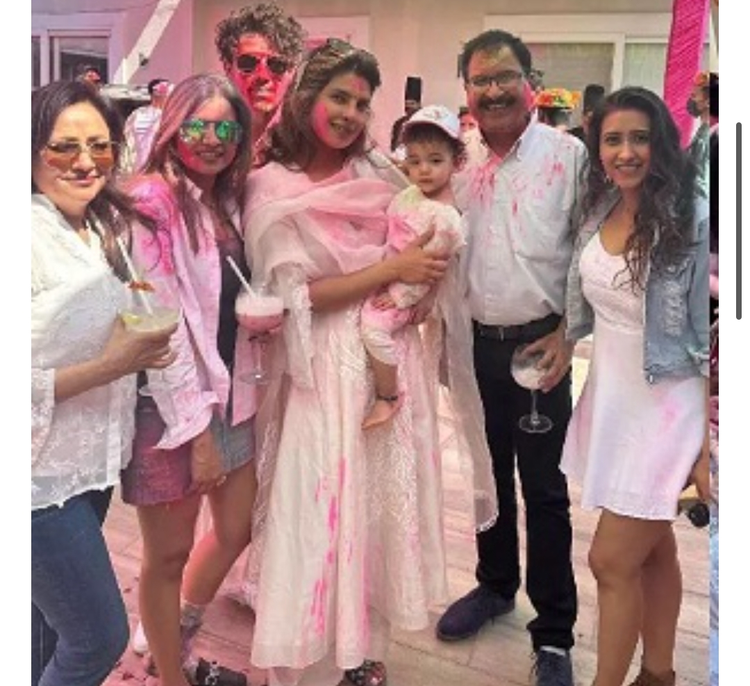 मुंबई । देसी गर्ल के नाम से मशहूर बॉलीवुड से हॉलीवुड स्टार बनीं प्रियंका चोपड़ा के साथ ही उनका परिवार भी भारत आया हुआ है। पति निक जोनस और बेटी मालती मेरी के साथ लगातार एक्ट्रेस नजर आ रही हैं। अब एक्ट्रेस ने भारत में होली भी सेलिब्रेट की है। शादी के बाद प्रियंका चोपड़ा की भारत में पहली होली है। इस ग्रैंड होली सेलिब्रेशन की तस्वीरें भी सामने आई हैं, जिसमें होली के रंगों में प्रियंका चोपड़ा रंगी नजर आ रही हैं। एक्ट्रेस के साथ ही उनका पूरा चोपड़ा परिवार भी होली की मस्ती में झूमता दिख रहा है।