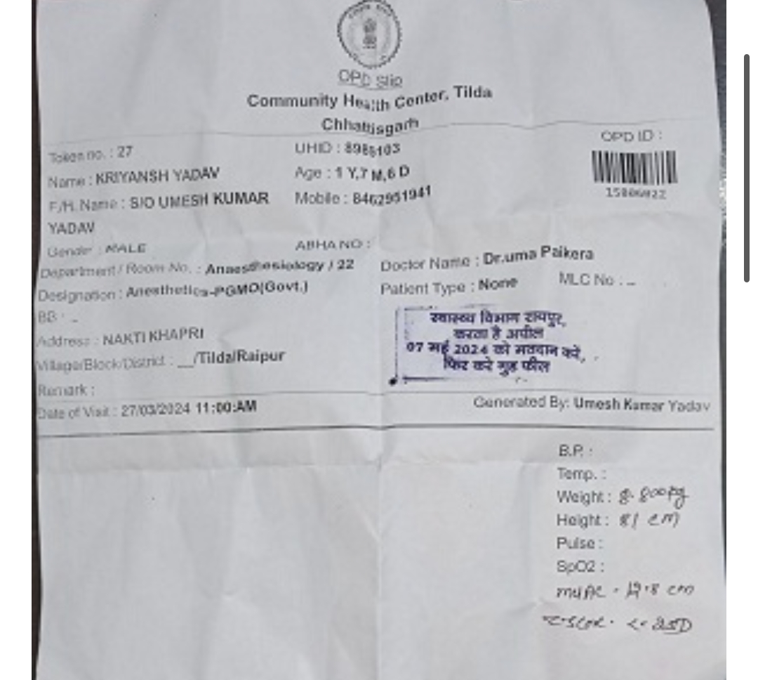 रायपुर । देश-प्रदेश में अभी लोक सभा चुनाव 2024 की तारीख़ो का ऐलान के साथ आदर्श आचार सहिता लागू है। आम नागरिक से लेकर अलग अलग संस्थाएँ मतदाता जागरूकता के लिए अपनी भूमिका निभा रहे हैं। छत्तीसगढ़ में तीन चरणों में मतदान संपादित होना है जिमसे तृतीय चरण का मतदान 7 मई को होना है। सामुदायिक स्वास्थ्य केंद्र तिल्दा ने ओ पी डी रसीद पर लगने वाले सील में मतदान के लिए जागरूकता लाने अनोखा पहल किया है। सामुदायिक केंद्र आने वाले हर व्यक्ति के ओ पी डी स्लिप में लगने वाले सील में 7 मई 2024 को मतदान करें, फिर करें गुड फील का संदेश अंकित करवाया है। आइये मतदान करें अपने साथ अपने आस पास के लोग को भी करायें मतदान।
