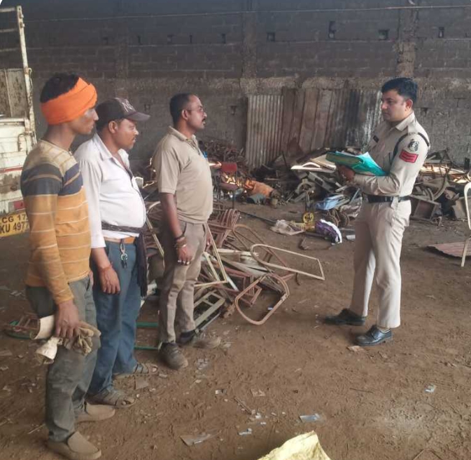 रायपुर, 06 अप्रैल । वरिष्ठ पुलिस अधीक्षक रायपुर संतोष कुमार सिंह के निर्देशन व अतिरिक्त पुलिस अधीक्षक शहर लखन पटले के नेतृत्व में चोरी की घटनाओं पर अंकुश लगाने एवं अवैध कबाड़ के कारोबार पर रोक लगाने के उद्देश्य से जिले के थाना प्रभारियों, एण्टी क्राईम एण्टी साईबर यूनिट की टीम सहित पुलिस बल की अलग-अलग टीमों द्वारा दिनांक 05.04.23 को जिले के थाना क्षेत्रांतर्गत संचालित कबाड़ियों के यार्ड, गोदाम एवं अन्य स्थानों में रेड कार्यवाही किया गया।