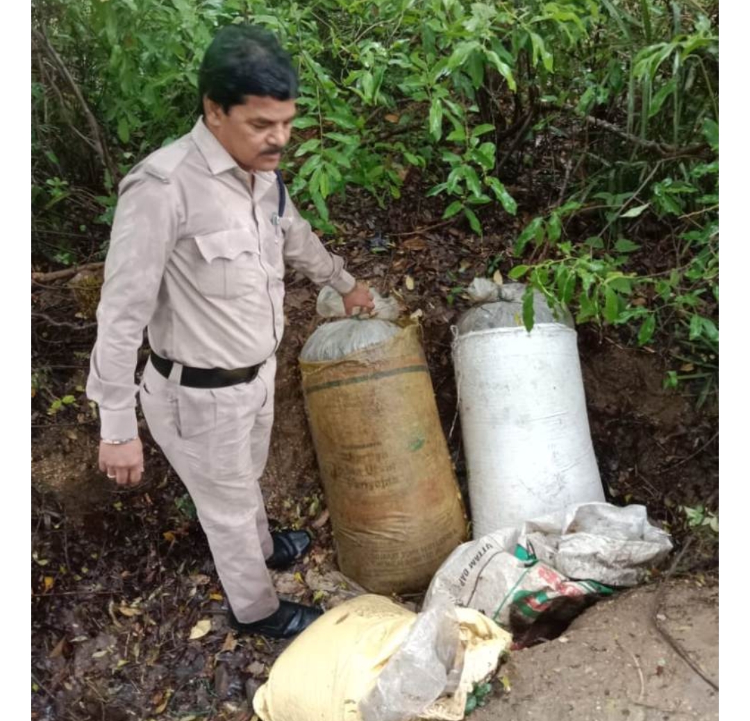 महासमुंद । मुखबिर सूचना के आधार पर आबकारी टीम बसना ने मंगलवार को ग्राम ठाकुरपाली में अवैध हाथभट्टी महुआ शराब के निर्माण पर कार्यवाही करने दबिश देने पर ठाकुरपाली गांव से लगे हुए नाले के पास हाथभट्टी में रखी हुई, महुआ लाहन 12 प्लास्टिक बोरे में 600 किलोग्राम, 01 प्लास्टिक ड्रम में 200 किलोग्राम कुल 800 किलोग्राम किण्वन अवस्था में महुआ लाहन कीमत 40 हजार रुपए तथा प्लास्टिक जेरिकेन एवं बाल्टी में रखी हुई कुल 45 लीटर हाथभट्टी महुआ शराब कीमत 9000 रुपए कुल बाज़ार मूल्य 49000 रुपए है। उक्त मदिरा 45 लीटर हाथ भट्टी महुवा शराब को विधिवत कब्जे आबकारी लिया गया, महुवा लाहन को मौके पर नष्ट किया गया।