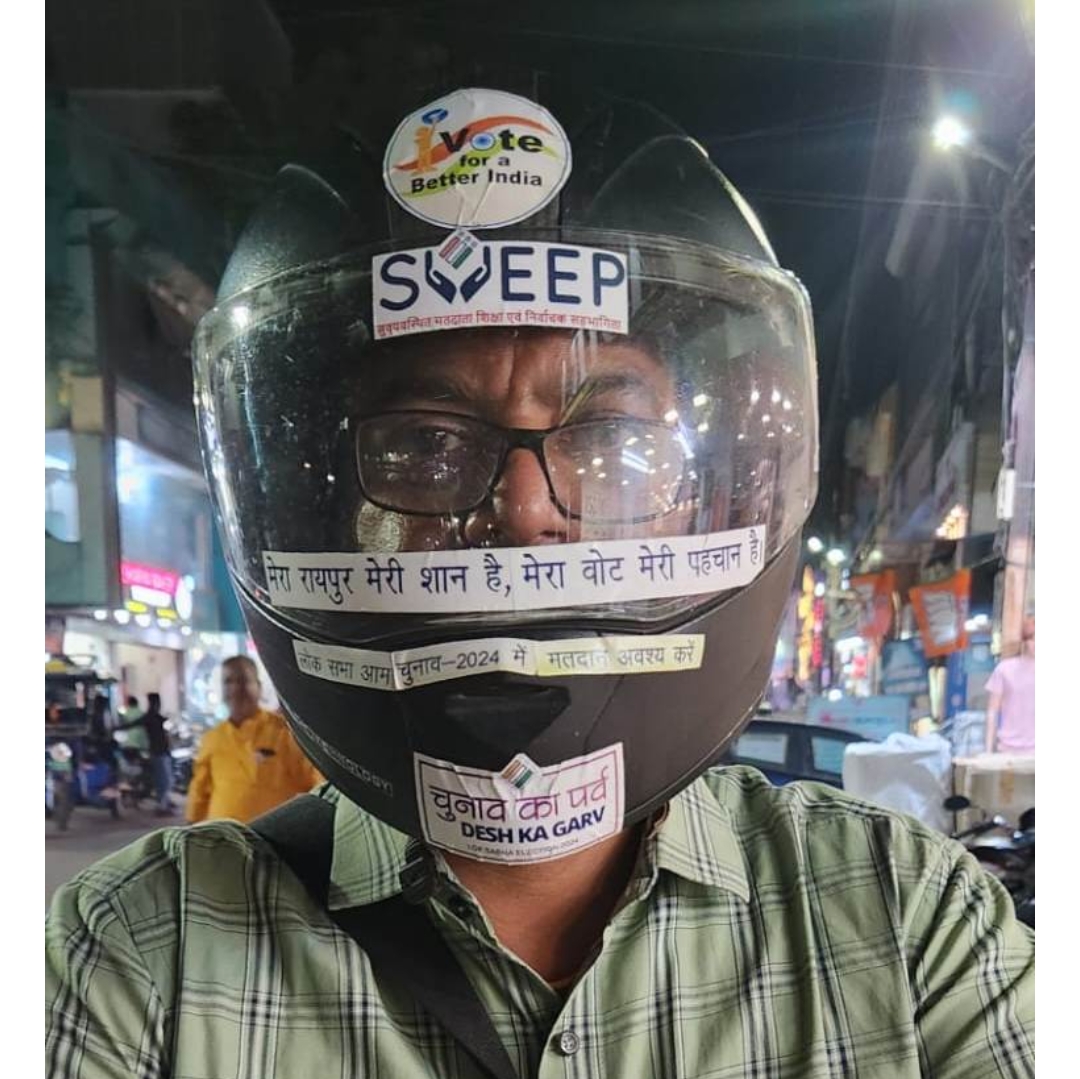 मुख्य निर्वाचन पदाधिकारी ने कहा कि स्वीप के तहत मतदाता जागरूकता के अभिनव कार्य किए जा रहे है। इसी कड़ी में दोपहिया वाहन चालकों के हेलमेट में मतदाता जागरूकता का संदेश दिया जाएगा। लोकसभा निर्वाचन में अधिक से अधिक नागरिक मतदान का हिस्सा बनेे। कलेक्टर ने कहा कि मतदाता जागरूकता के लिए अधिकारी व कर्मचारी के हेलमेट में स्टीकर लगायेंगे। जिसे लोग मतदान के प्रति जागरूक होंगे।