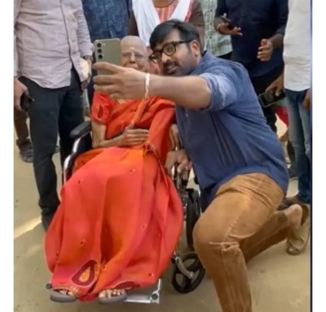चेन्नई । तमिल सिनेमा के मशहूर एक्टर विजय सेतुपति जिन्हें आप मक्कल सेलवन के नाम से भी जानते हैं, आज लोकसभा चुनाव के पहले चरण की वोटिंग के दौरान चेन्नई के एक मतदान केंद्र पर अपने मताधिकार का प्रयोग करने पहुंचे। इस दौरान उनकी मुलाकात कई फैंस से हुई, लेकिन इस बीच उनकी नजर व्हीलचेयर पर बैठी एक बुजुर्ग महिला पर पड़ी। ये महिला भी अपना वोट डालने आई थीं। एक्टर ने इनके फैन हो गए और खुद आगे बढ़कर उनसे मिलने गए। इस दौरान का एक वीडियो भी सामने आया है, जो तेजी से वायरल हो रहा है। इस वीडियो को देखने वाले सभी लोग एक्टर की खूब तारीफें कर रहे हैं। लोगों को उनका अंदाज भा गया है। इस वीडियो में उन्होंने बुजर्ग महिला के साथ सेल्फी खींचकर लोगों का दिल जीत लिया है।
