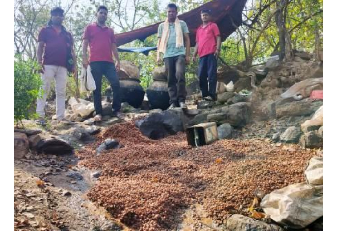 महासमुंद । मुखबिर सूचना के आधार पर आबकारी टीम सरायपाली द्वारा सोमवार को ग्राम गेर्रा थाना बलौदा के शिशुपाल पर्वत से लगे पहाड़ी में अवैध हाथभट्टी महुआ शराब के निर्माण पर कार्यवाही करने दबिश देने पर गांव से लगे हुए पहाड़ी के उपर हाथभट्टी में अलग-अलग स्थान में रखी 27 प्लास्टिक बोरियों में कुल 945 किलोग्राम महुआ लाहन कीमत 47250 रुपए व एक प्लास्टिक बोरी में पॉलीथिन में बंधा हुआ 20 लीटर हाथभटी महुआ शराब कीमत 4000 रुपए कुल बाजार मूल्य 51250 रुपए को विधिवत कब्जे आबकारी लिया गया तथा महुआ लाहन को मौके पर नष्ट किया गया।