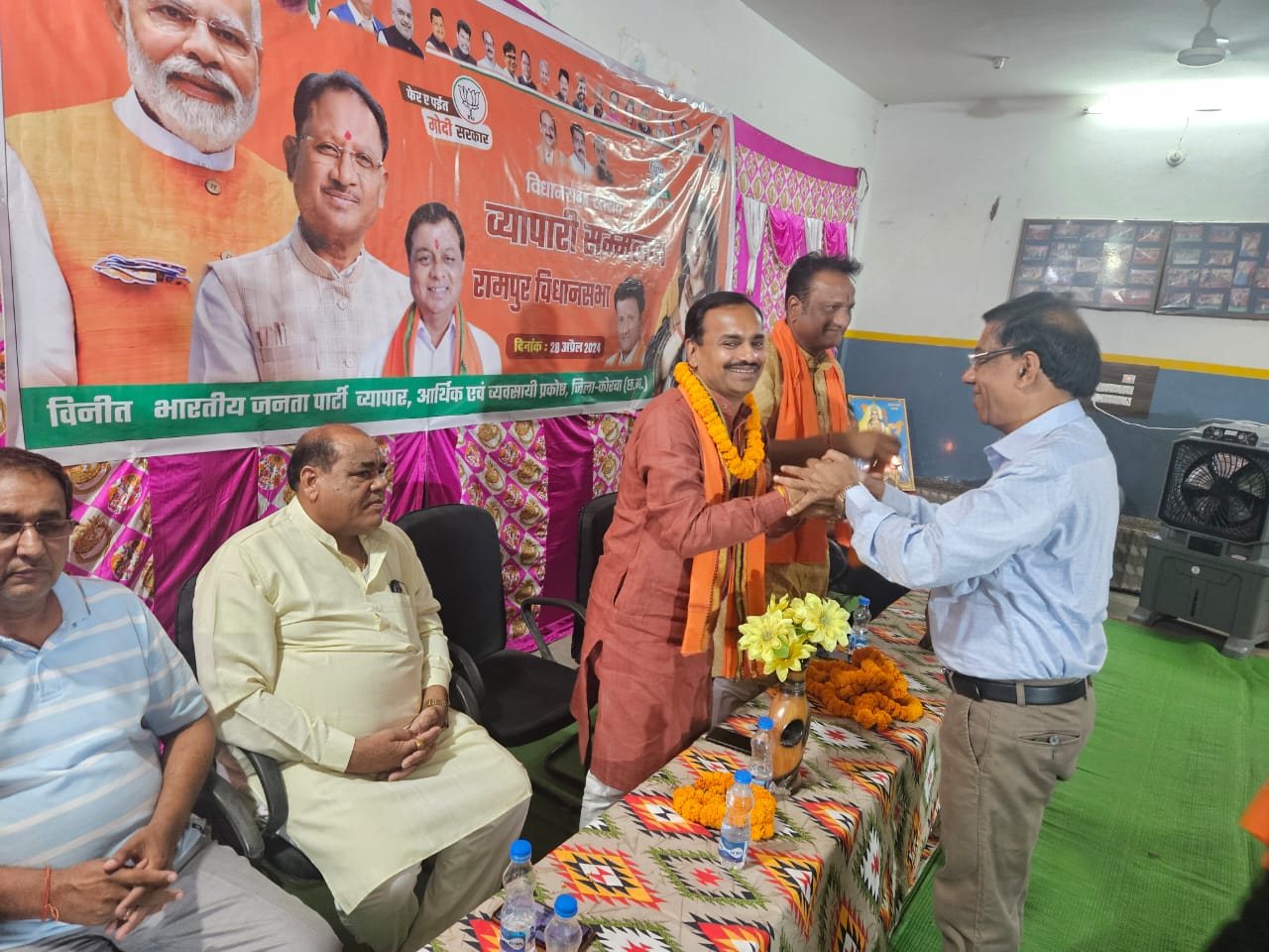 रामपुर विधानसभा के शक्ति केंद्र रामपुर में आयोजित हुआ विधानसभा स्तरीय व्यापारी सम्मेलन। मंचस्थ अतिथियों – नेता प्रतिपक्ष श्री हितानंद अग्रवाल जी, पूर्व नगर पालिका उपाध्यक्ष श्री कमल गर्ग जी, विधानसभा खरसिया के भाजपा प्रत्याशी रहे श्री महेश साहू जी, रायगढ़ जिला प्रभारी शिव वैष्णव जी, लख्खू अग्रवाल जी ने व्यापारी बंधुओ को संबोधित किया।