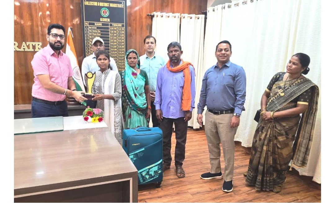 कलेक्टर विनय कुमार लंगेह ने शुक्रवार को कार्यालय में कुमारी प्रगति को उज्ज्वल भविष्य की बधाई व शुभकामनाएं देते हुए स्मृति चिन्ह भेंट की साथ ही आवश्यक सामग्री युक्त किट भी छात्रा कुमारी प्रगति को उनके माता-पिता की उपस्थिति में प्रदान किया गया ताकि सफर के दौरान किसी भी प्रकार की कमी महसूस हो।