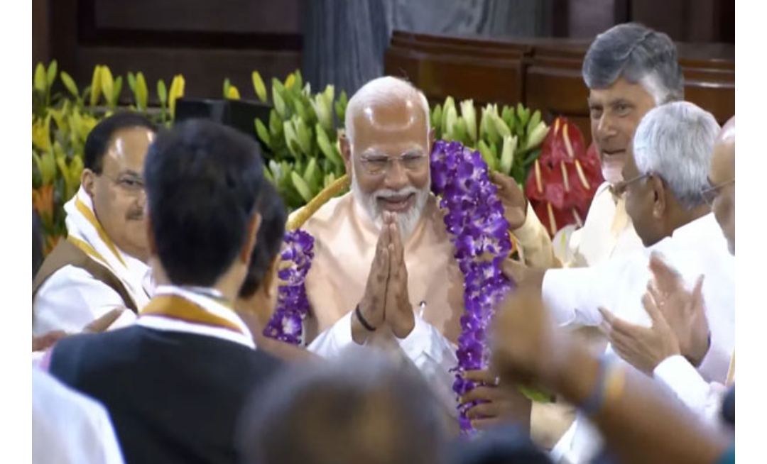 नई दिल्ली । पुरानी संसद के सेंट्रल हॉल में NDA संसदीय दल की बैठक में सभी घटक दलों के समर्थन से नरेंद्र मोदी लोकसभा के नेता, भाजपा के नेता और एनडीए संसदीय दल के नेता चुने गए। JDU और TDP ने पीएम पद के लिए प्रधानमंत्री नरेंद्र मोदी के नाम का अनुमोदन किया है।