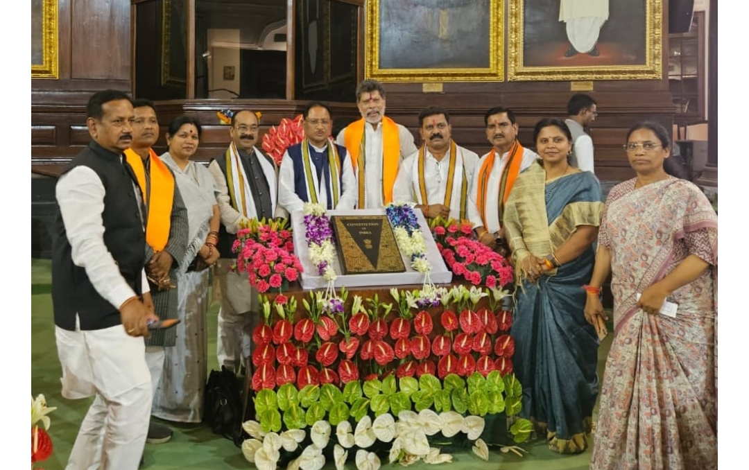 रायपुर । मुख्यमंत्री विष्णु देव साय,प्रदेश अध्यक्ष किरण सिहदेव ,उपमुख्यमंत्री अरुण साव,राष्ट्रीय उपाध्यक्ष लता उसेंडी सहित सांसदों ने सेंट्रल हाल में संविधान को नमन किया।