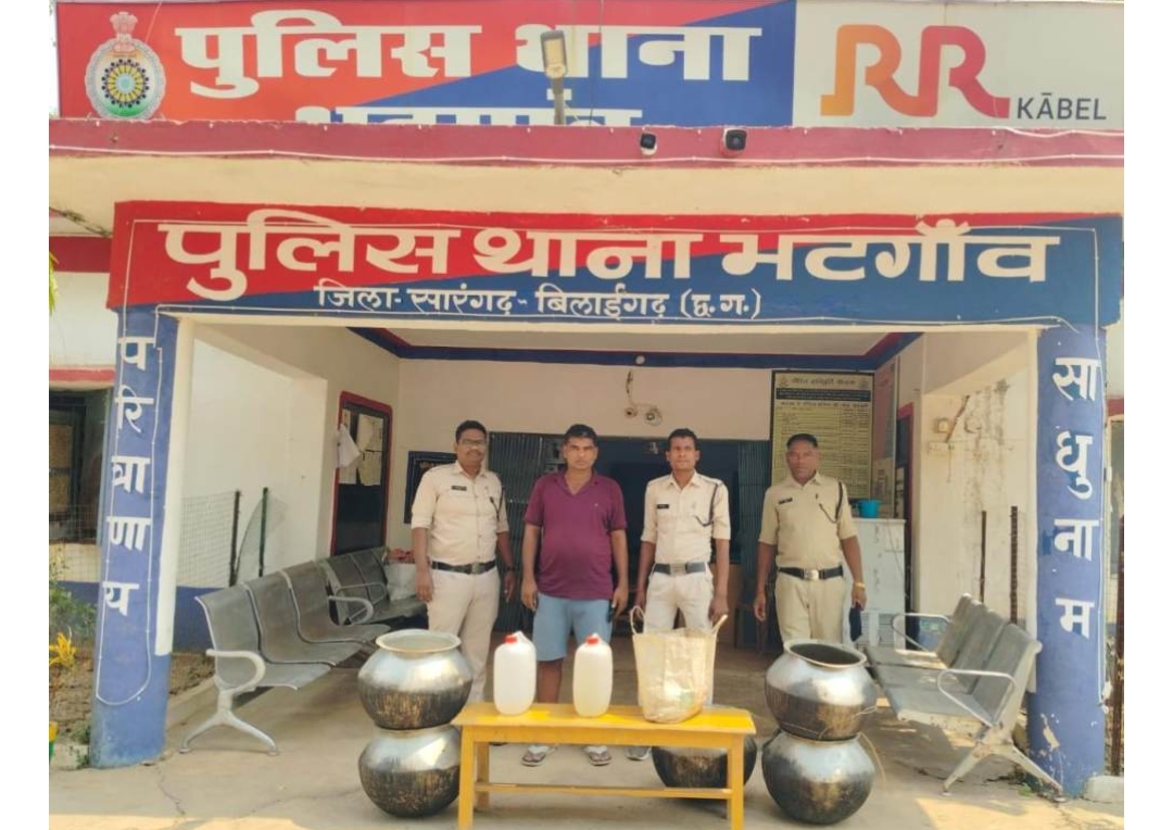 भटगांव । पुलिस अधीक्षक पुष्कर शर्मा के दिशा निर्देश पर अतिरिक्त पुलिस अधीक्षक कमलेश्वर चंदेल एवं SDOP बिलाईगढ के मार्गदर्शन में थाना क्षेत्रों में होने वाली अवैध गतिविधियों, जैसे अवैध शराब, जुआ, सट्टा, के खिलाफ सख्त कार्रवाई करने के निर्देश दिए गए हैं। इसी कड़ी में थाना प्रभारी सउनि अमृत भार्गव के नेतृत्व में 8 जून को पुलिस अधीक्षक द्वारा गठित स्पेशल टीम ने अवैध शराब के खिलाफ एक रेड कार्यवाही की।