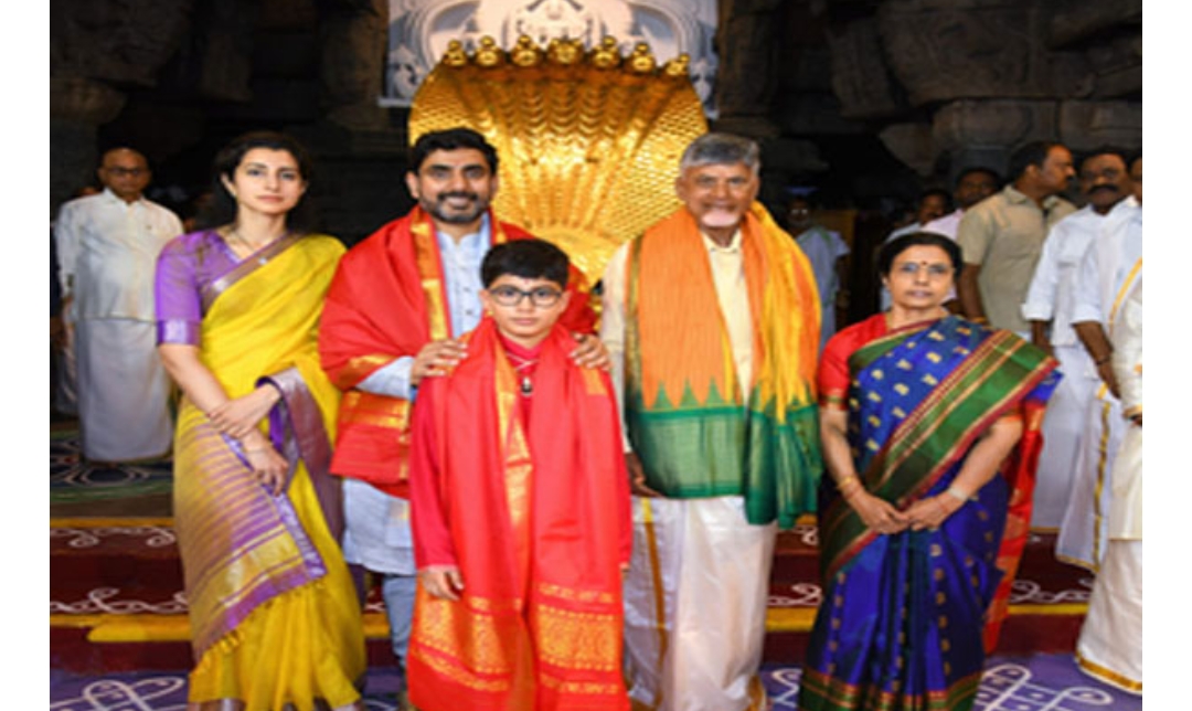तिरुपति । आंध्र प्रदेश के मुख्यमंत्री के रूप में शपथ लेने के एक दिन बाद, चंद्रबाबू नायडू ने गुरुवार को तिरुमाला मंदिर में पूजा-अर्चना की। चंद्रबाबू नायडू ने पत्नी भुवनेश्वरी, बेटे और मंत्री नारा लोकेश, बहू ब्राह्मणी व पोते देवांश के साथ मंदिर में प्रार्थना किया। बुधवार देर रात तिरुमाला पहुंचे मुख्यमंत्री और उनके परिवार के सदस्यों ने गुरुवार तड़के दर्शन किया। इस दौरान उन्होंने विभिन्न अनुष्ठानों में भी भाग लिया।