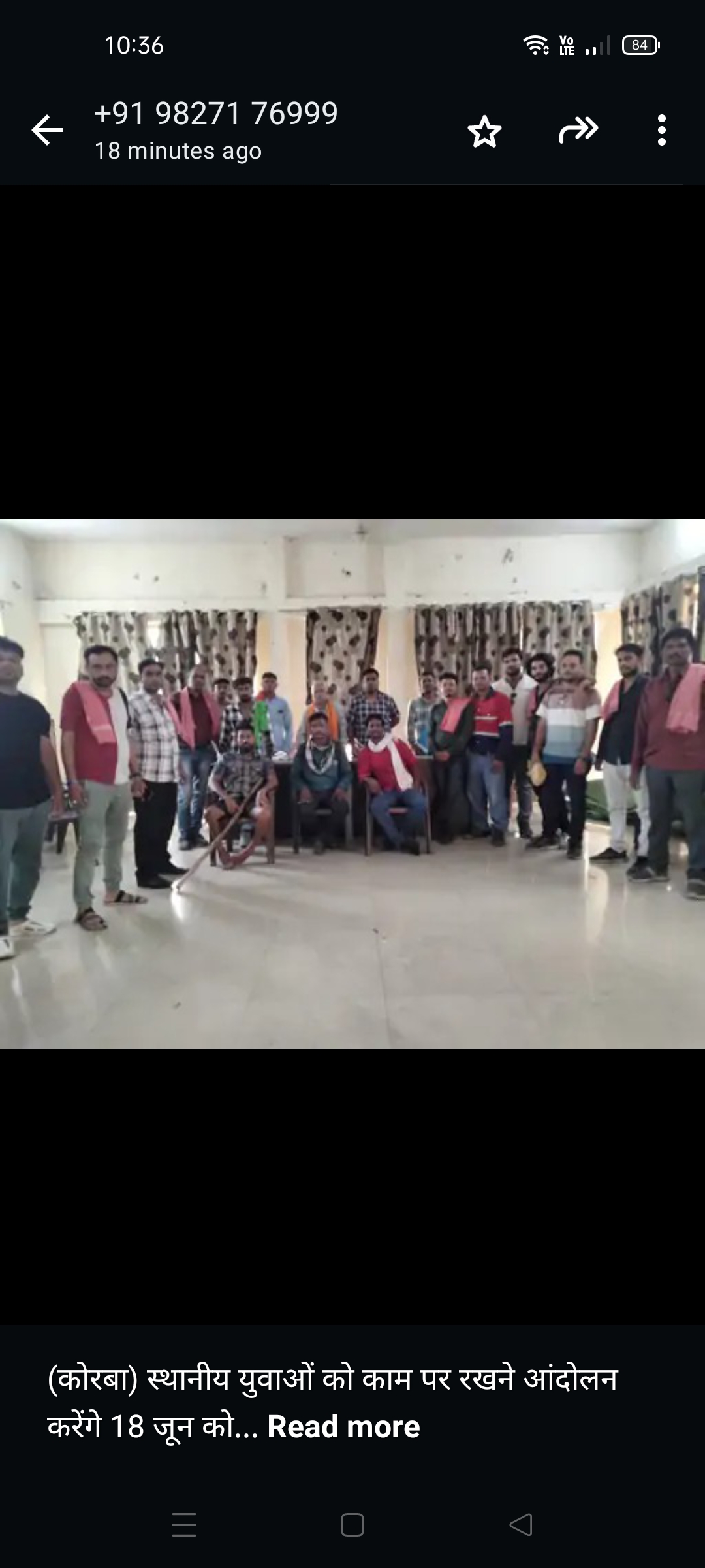 (कोरबा) स्थानीय युवाओं को काम पर रखने आंदोलन करेंगे 18 जून को