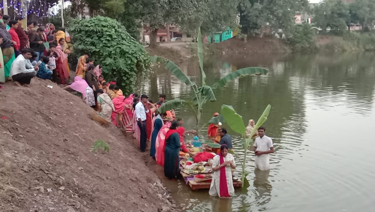 खरसिया ,30 अक्टूबर । आस्था का महापर्व छठ के चार दिवसीय इस अनुष्ठान के तीसरे दिन भगवान भास्कर को संध्या में पहला अर्घ्य अर्पित किया गया। मान्यता है कि शाम के समय सूर्य देवता अपनी अर्धांगिनी देवी प्रत्युषा के साथ समय बिताते हैं। यही कारण है कि छठ पूजा में शाम को डूबते हुए सूर्य को अर्ध्य दिया जाता है। रंगीन मछलियों के लिए प्रसिद्ध भगत तालाब पर मानो आस्था का सैलाब उमड़ पड़ा।