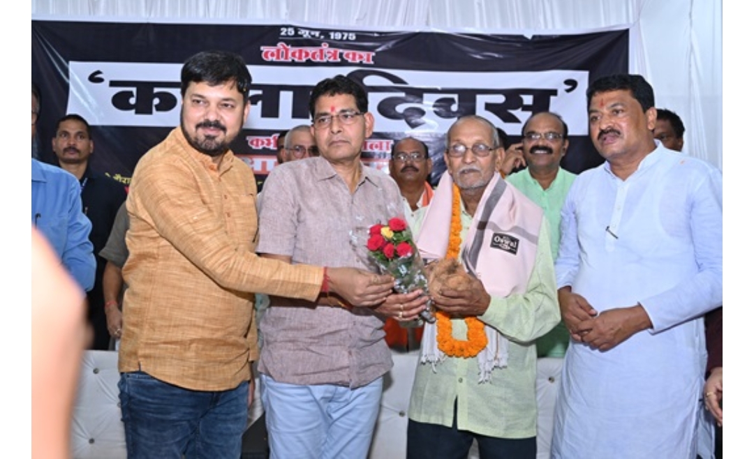 रायपुर । पूज्य सिंधी पंचायत भवन तिल्दा में आज भारतीय जनता पार्टी के तत्वाधान में 25 जून को लोकतंत्र का काला दिवस के रूप में मनाया गया। इस अवसर पर राजस्व मंत्री टंक राम वर्मा ने आपातकाल के दौरान बंदी बनाये गए राष्ट्रभक्त मीसा बंदी मालूराम शर्मा और शत्रुघ्न वर्मा को सम्मानित किया।इस अवसर पर धरसींवा विधायक अनुज शर्मा,अन्य जनप्रतिनिधिगण सहित बड़ी संख्या में लोग उपस्थित थे।