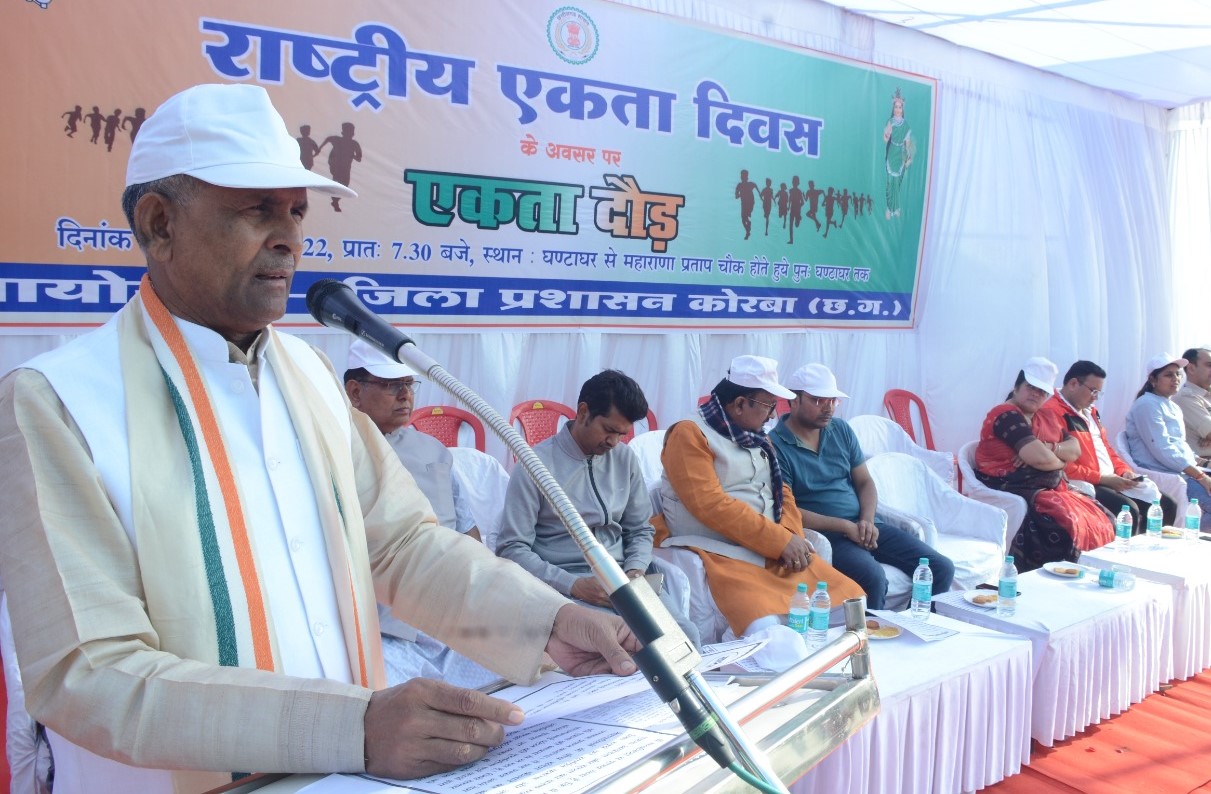 कोरबा 31 अक्टूबर I जिले में सरदार वल्लभ भाई पटेल की जयंती को राष्ट्रीय एकता दिवस के रूप में मनाया गया। इस अवसर पर एकता दौड़ (रन फॉर यूनिटी) का आयोजन कोरबा शहर के घंटाघर स्थित डॉ भीमराव अम्बेडकर ओपन ऑडोटोरियम में किया गया। जिला प्रशासन की ओर से आयोजित इस कार्यक्रम में महापौर राजकिशोर प्रसाद मुख्य अतिथि के रूप में शामिल हुए। इसी प्रकार पाली में पाली तानाखार विधायक मोहित राम केरकेट्टा और दीपका में कटघोरा विधायक पुरुषोत्तम कंवर भी एकता दिवस के कार्यक्रम में शामिल हुए।