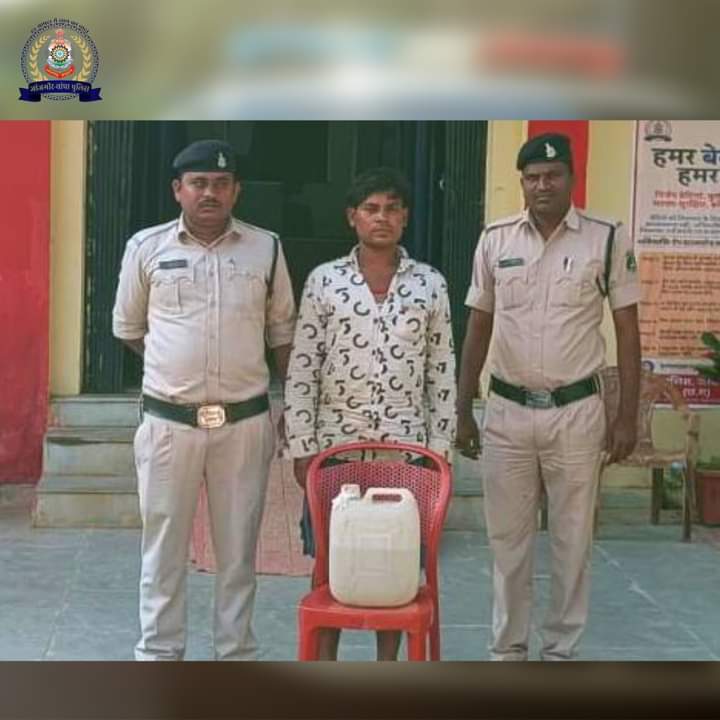 आरोपी के कब्जे से 08 लीटर कच्ची महुआ शराब किया गया बरामद