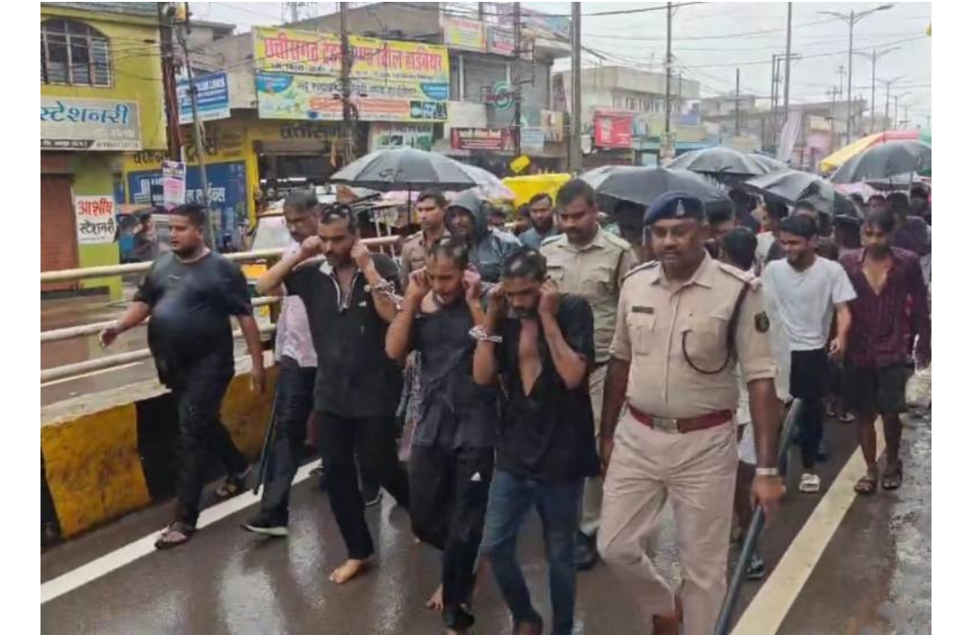 रायपुर । पुलिस ने युवक को बंधक बनाकर अपहरण और मारपीट करने के मामले में चार आरोपियों को गिरफ्तार किया है। गिरफ्तार करने के बाद चारों बदमाशों का मुंडन कर पुलिस ने जुलुस भी निकाला।