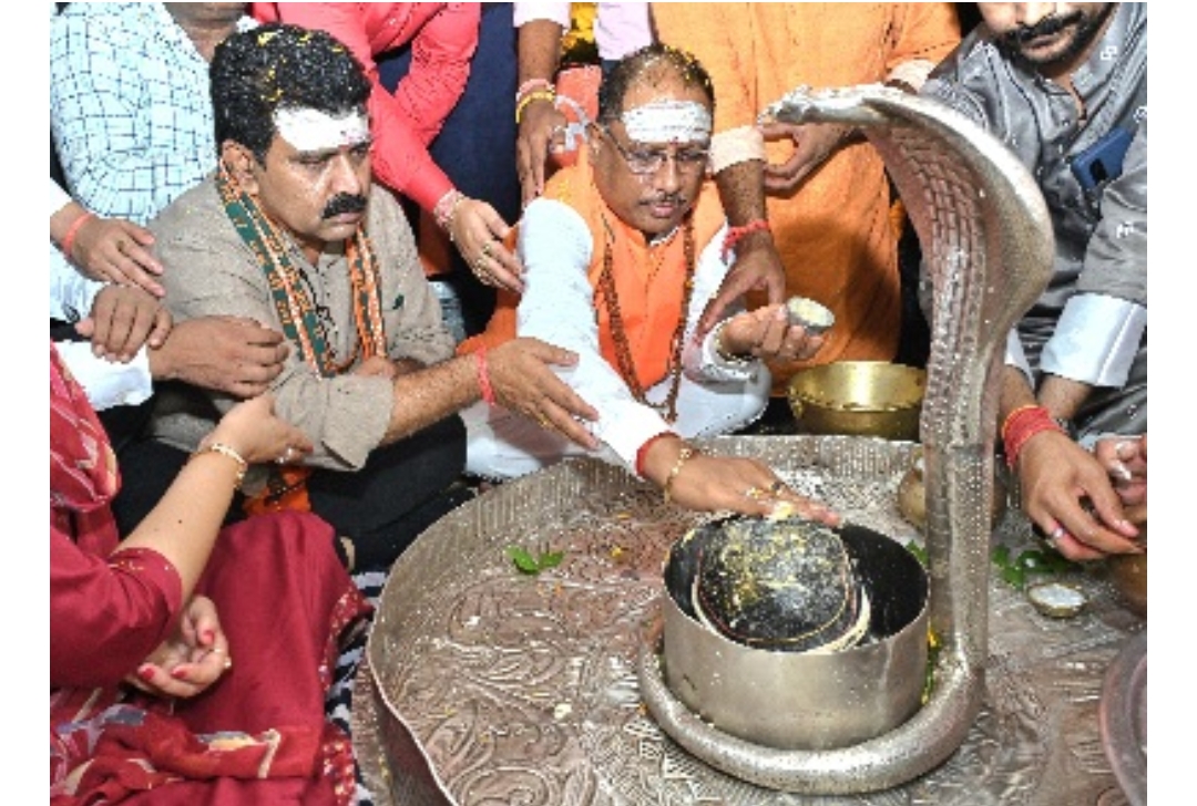 रायपुर । मुख्यमंत्री विष्णुदेव साय ने उपमुख्यमंत्री विजय शर्मा के साथ भोरमदेव बाबा भगवान शिव जी का दर्शन कर मंत्रोच्चारण के साथ विशेष पूजा-अर्चना और रुद्राभिषेक किया तथा प्रदेश की समृद्धि एवं खुशहाली की कामना की और आशीर्वाद लिया।