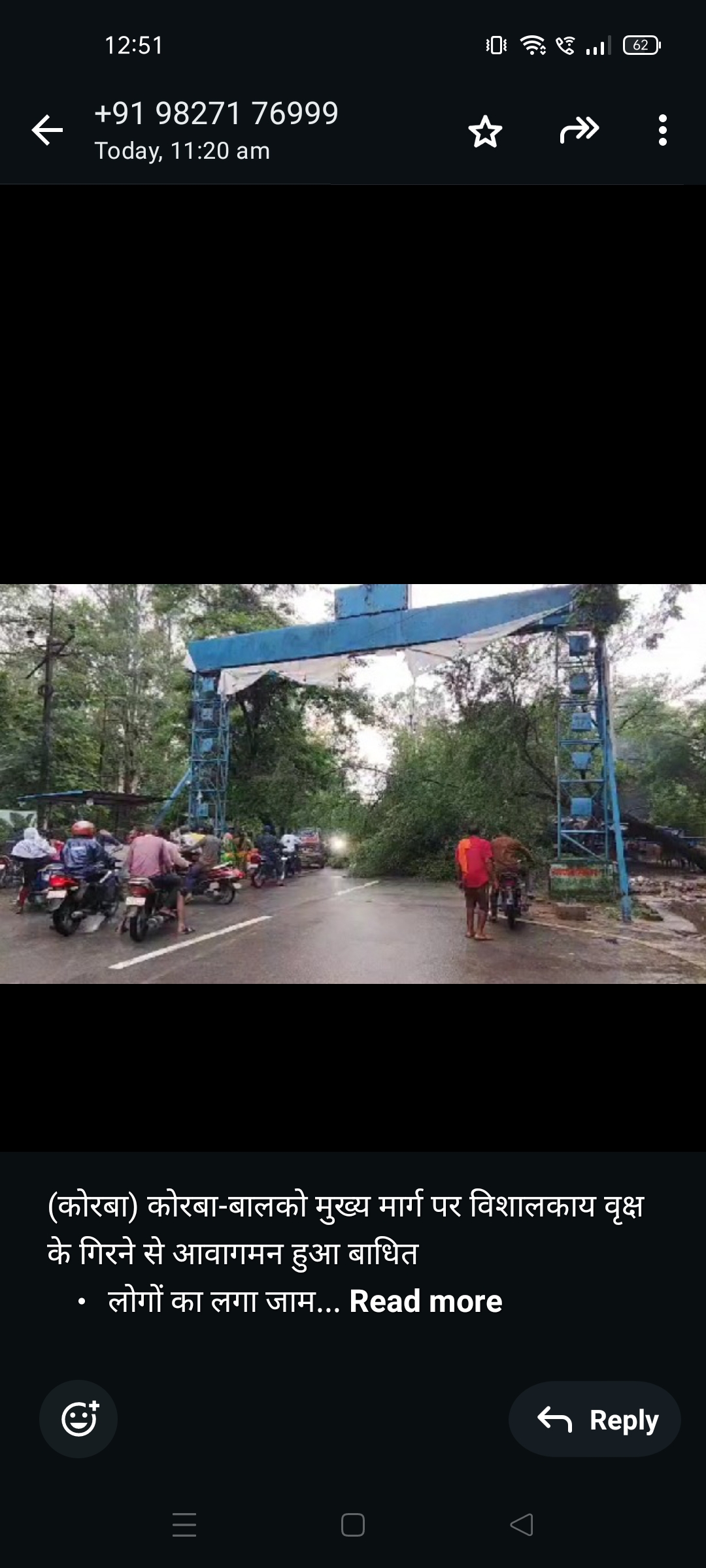 वृक्ष गिरने की जानकारी मिलने पर नगर निगम की जेसीबी के द्वारा वृक्ष को हटाने का प्रयास किया जा रहा है लेकिन लोग सड़क के दोनों और बड़ी संख्या में लोग जाम में फंस गए। शाम होने की वजह से मार्ग पर अवगमन ज्यादा था, वृक्ष के गिरने से इस मार्ग में लगने वाले कुछ गुमटियाँ को नुकसान पहुंचा है।