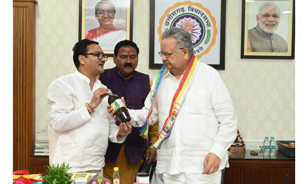 अखिल जैन ने इस अवसर पर “रचना गाय: एक वरदान” नामक पुस्तक, गोबर से निर्मित वास्तु वैदिक गणेश भगवान की प्रतिमा, गोबर की वैदिक माला, गौ धन अर्क, फसल अमृत, और कामधेनु माता सौम्या का मोमेंटो विधान सभा अध्यक्ष को भेंट किया। साथ ही, उन्होंने विधान सभा अध्यक्ष को मनोहर गौशाला, खैरागढ़ में कामधेनु माता के दर्शन हेतु आने का निमंत्रण भी दिया। इस मुलाकात के दौरान वरिष्ठ समाजसेवी पुरुषोत्तम गांधी भी उपस्थित थे।