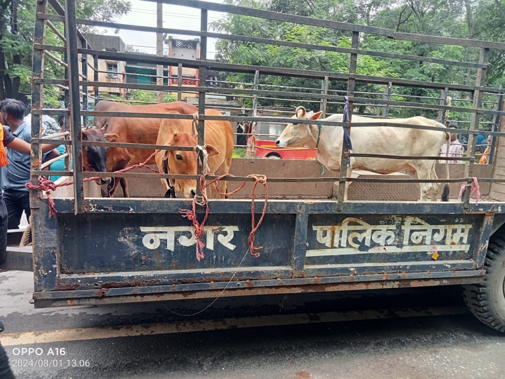 निगम द्वारा लगातार किया जा रहा सड़कों से मवेशी हटाने का कार्य