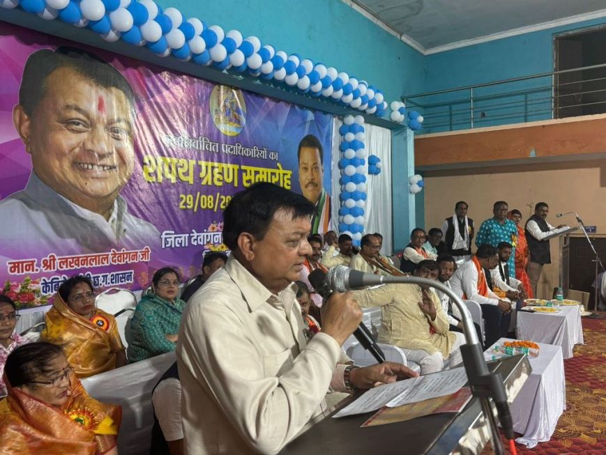 मंत्री देवांगन ने सभी नवनिर्वाचित पदाधिकारियों को पद की शपथ दिलाई। उन्होंने सभी को बधाई और शुभकामनाएं दी, उन्होंने अपने उद्बोधन में कहा की आप समाज के प्रमुख है, मंत्री देवांगन ने समाज को पूरे प्रदेश में एकजुट करने का संदेश दिया। साथ ही कहा कि हम सभी अलग अलग जगहों पर काम करते हैं। समाज को और भी बेहतर दिशा देते काम करें। समाज को प्रगतिपथ से प्रगतिशील बनाने के लिए प्रयास करें।