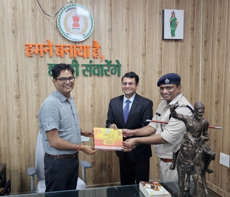 रायपुर। वित्त मंत्री ओपी चौधरी से रविवार को रायपुर के उनके निवास कार्यालय में रायगढ़ कलेक्टर कार्तिकेया गोयल और पुलिस अधीक्षक दिव्यांग पटेल ने मुलाकात कर उन्हें 39 वें चक्रधर समारोह में शामिल होने के लिए आमंत्रित किया। वित्त मंत्री चौधरी ने समारोह के संबंध में जानकारी ली तथा सभी तैयारियां समय पर करने कहा। उन्होंने चक्रधर समारोह के सफल आयोजन के लिए अपनी शुभकामनाएं भी दीं। कलेक्टर गोयल ने समारोह की सभी तैयारी के संबंध में विस्तार से जानकारी दी।