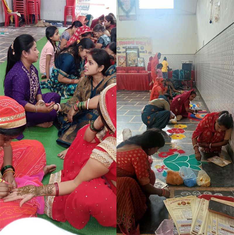 सांस्कृतिक कार्यक्रमों की शुरुआत 13 सितंबर को की गई, जिसमें युवतियों के लिए रंगोली, मेंहदी, और फैंसी ड्रेस प्रतियोगिता का आयोजन किया गया था। मेंहदी प्रतियोगिता में 10 युवतियों ने भाग लेकर अपनी कलात्मकता का प्रदर्शन किया। रंगोली प्रतियोगिता में 15 युवतियों ने हिस्सा लिया, जबकि फैंसी ड्रेस प्रतियोगिता में 7 युवतियों ने भाग लिया, जिन्होंने बंगाली, मराठी, गंगुबाई और हाउसवाइफ जैसे विभिन्न परिधानों में मनमोहक प्रस्तुतियाँ दीं।