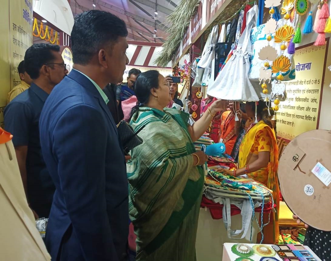 रायपुर, 05 नवंबर I महिला एवं बाल विकास और समाज कल्याण मंत्री श्रीमती अनिला भेंड़िया राजधानी रायपुर के साइंस कॉलेज मैदान में राज्योत्सव के दौरान आयोजित विकास प्रदर्शनी में विभागीय स्टॉलों को देखने पहुंची। उन्होंने महिला बाल विकास विभाग के स्टॉल से खरीदी कर स्वसहायता समूहों की महिलाओं का हौसला बढ़ाया। उन्होंने रौशनी दिव्यांग स्व-सहायता समूह रायपुर की सदस्यों ने उत्साहित होकर बताया कि मंत्री श्रीमती भेंड़िया ने उनके स्टॉल से 200 रूपए का की-होल्डर खरीदा।