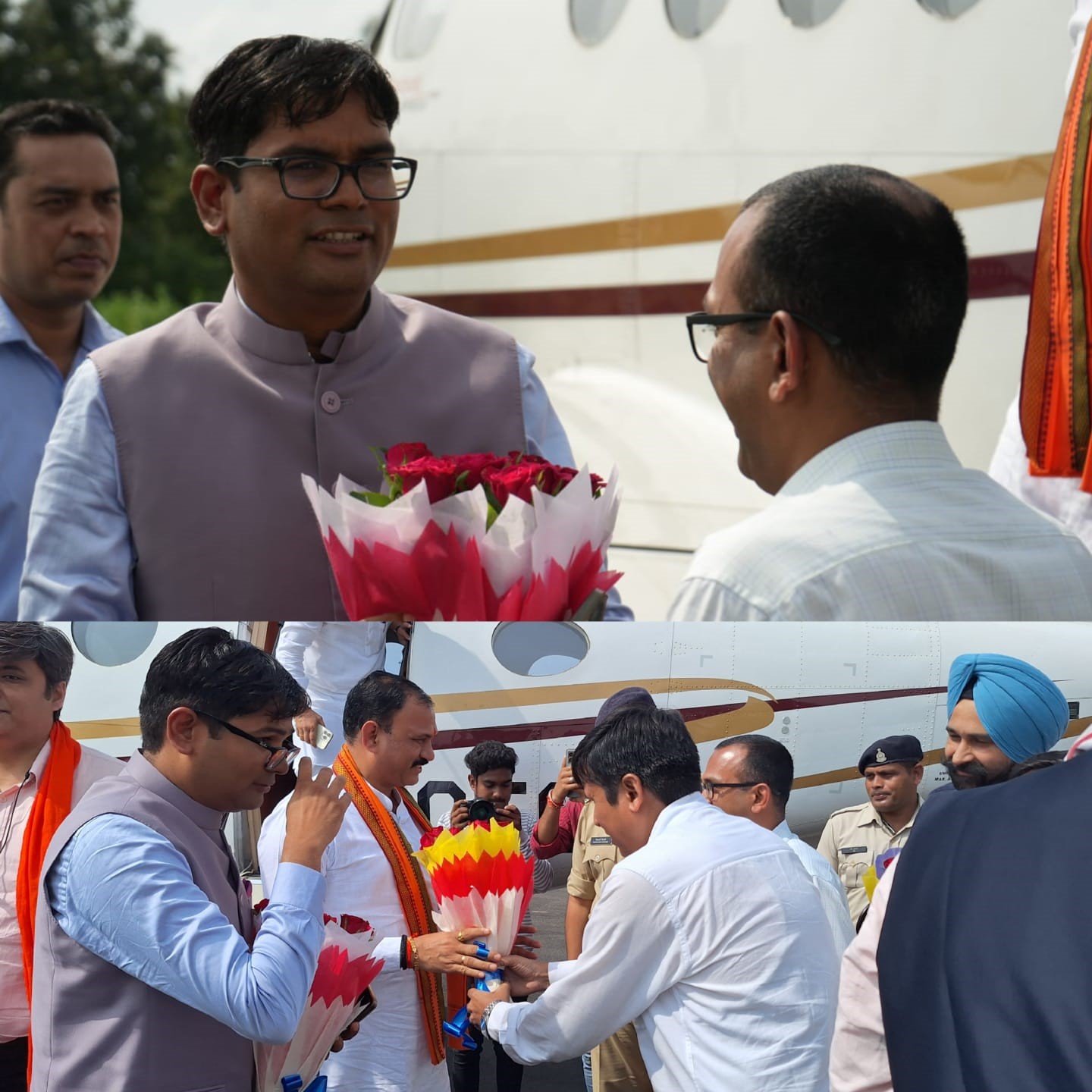 कोरबा : अल्पावधि के कोरबा जिला प्रवास पर पहुंचे वित्त, वाणिज्यिक कर, आवास एवं पर्यावरण, योजना आर्थिक एवं सांख्यिकी विभाग मंत्री ओ.पी. चौधरी एवं लोक स्वास्थ्य एवं परिवार कल्याण, चिकित्सा शिक्षा, बीस सूत्रीय कार्यान्वयन विभाग मंत्री श्याम बिहारी जायसवाल का कोरबा जिला कलेक्टर अजीत वसंत एवं पुलिस अधीक्षक सिद्धार्थ तिवारी ने रूमगरा एयर स्ट्रीप पर स्वागत किया।