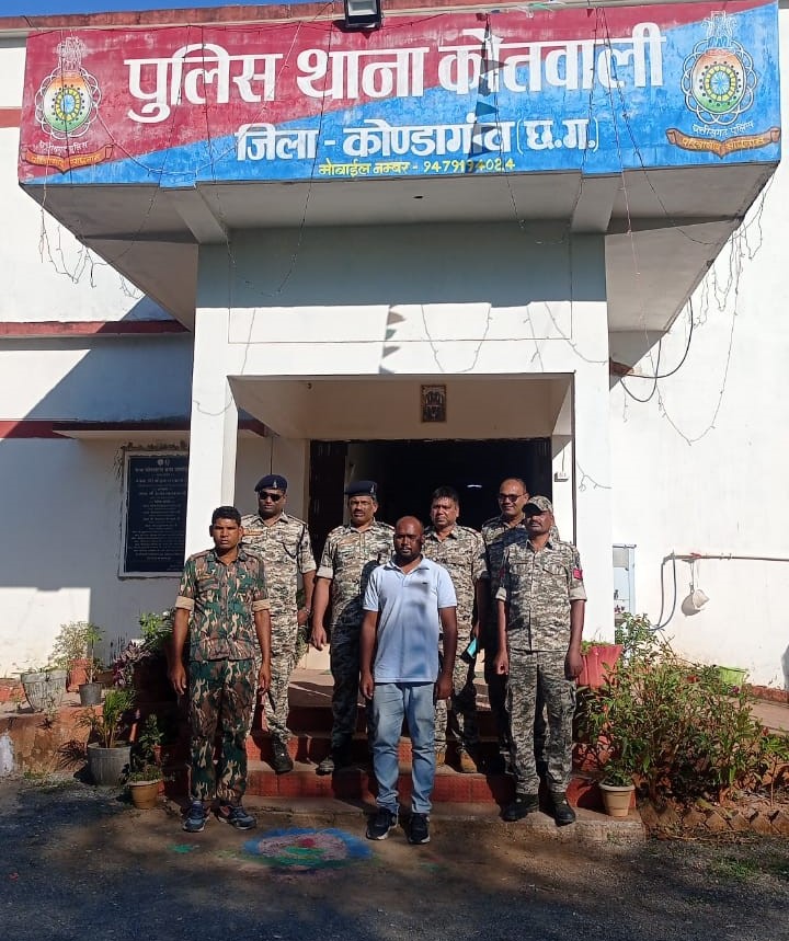 सम्पूर्ण कायर्वाही में निरीक्षक भीमसेन यादव थाना प्रभारी कोण्डागांव, प्रधान आरक्षक नरेन्द्र देहारी, महिला प्रधान आरक्षक विमला माला की अहम भूमिका रही।
