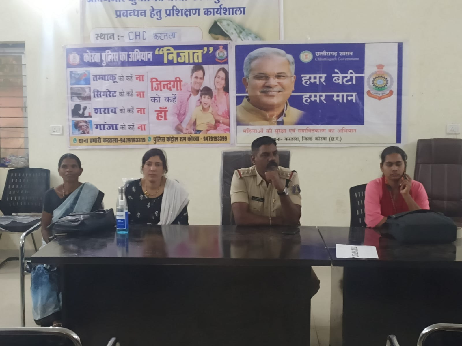 पुलिस अधीक्षक कोरबा संतोष सिंह द्वारा अवैध नशे के विरुद्ध चलाए जा रहे निजात अभियान के तहत थाना करतला क्षेत्र सामुदायिक स्वास्थ्य केंद्र प्रशिक्षण हाल में महिला एवं बाल विकास के 57 प्रशिक्षणरत सुपरवाइजर एवं कार्यकर्ताओं को को हमर बेटी हमर मान, नशा के खिलाफ जागरूकता अभियान, साईबर क्राइम, अभिव्यक्ति ऐप