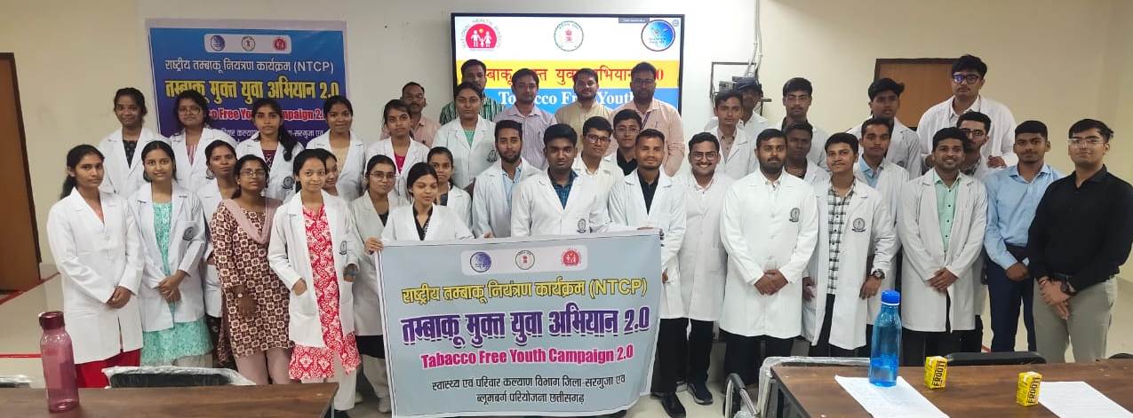 राष्ट्रीय तम्बाकू नियंत्रण कार्यक्रम अंतर्गत पिछले वर्ष की भांति इस वर्ष भी प्रदेष में तम्बाकू फ्री यूथ कैम्पेन 2.0 (टाईफाई) दिनांक 24 सितम्बर 2024 से आयोजित किया जा रहा है। नोडल अधिकारी डॉ0 शैलेन्द्र गुप्ता के मार्गदर्शन में अभियान के तहत ब्लूमबर्ग के संभागीय सलाहकार प्रकाश श्रीवास्तव ने मेडिकल कॉलेज के स्टूडेंट को पावर प्वाईंट के माध्यम से तम्बाकू के दुष्परिणाम के संबंध में विस्तार से बताया गया। उन्होने कहा कि कई सारे मरीज ऐसे होते हुए जो इसे छोड़ना तो चाहते हैं, किन्तु उचित मार्गदर्शन न होने की स्थिति में छोड़ना संभव नही हो पाता। चिकित्सकीय क्षेत्र में आप सभी का सहयोग बेहद आवश्यक है, आमजन किसी भी दिन अपनी नजदीकी स्वास्थ्य केन्द्र से संपर्क कर तम्बाकू छोड़ने एवं उससे छोड़ने हेतु उपयोग में आने वाली दवाईयां जानकारी प्राप्त कर सकते है। दृढ़संकल्प लाकर भी तम्बाकू जैसे सेवन को दूर करना संभव है।