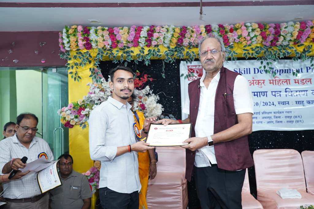 नवीन अंकुर महिला मंडल द्वारा स्किल इंडिया कार्यक्रम के तहत नेशनल स्किल डेवलपमेंट कॉरपोरेशन के तत्वाधान में ग्राम- तर्री, विकास खण्ड अभनपुर और ग्राम- भानसोज, विकास खण्ड आरंग में सिलाई और कड़ाई प्रशिक्षण तथा नवापारा, विकास खण्ड अभनपुर और मंदिर हसौद, विकास खण्ड आरंग में 3 माह का कम्प्यूटर प्रशिक्षण दिया गया था।