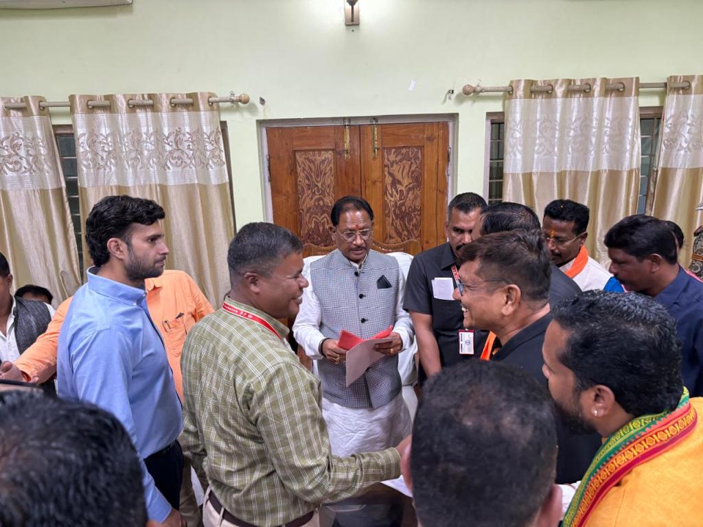 दंतेवाड़ा । मुख्यमंत्री विष्णुदेव साय ने मंगलवार को दंतेवाड़ा जिले के एक दिवसीय प्रवास के दौरान स्थानीय सर्किट हाउस में क्षेत्र के जनप्रतिनिधियों और गणमान्य नागरिकों से रूबरू भेंट कर उनकी मांग एवं समस्या-शिकायतें सुनी और निराकरण के लिए भरोसा दिलाया।