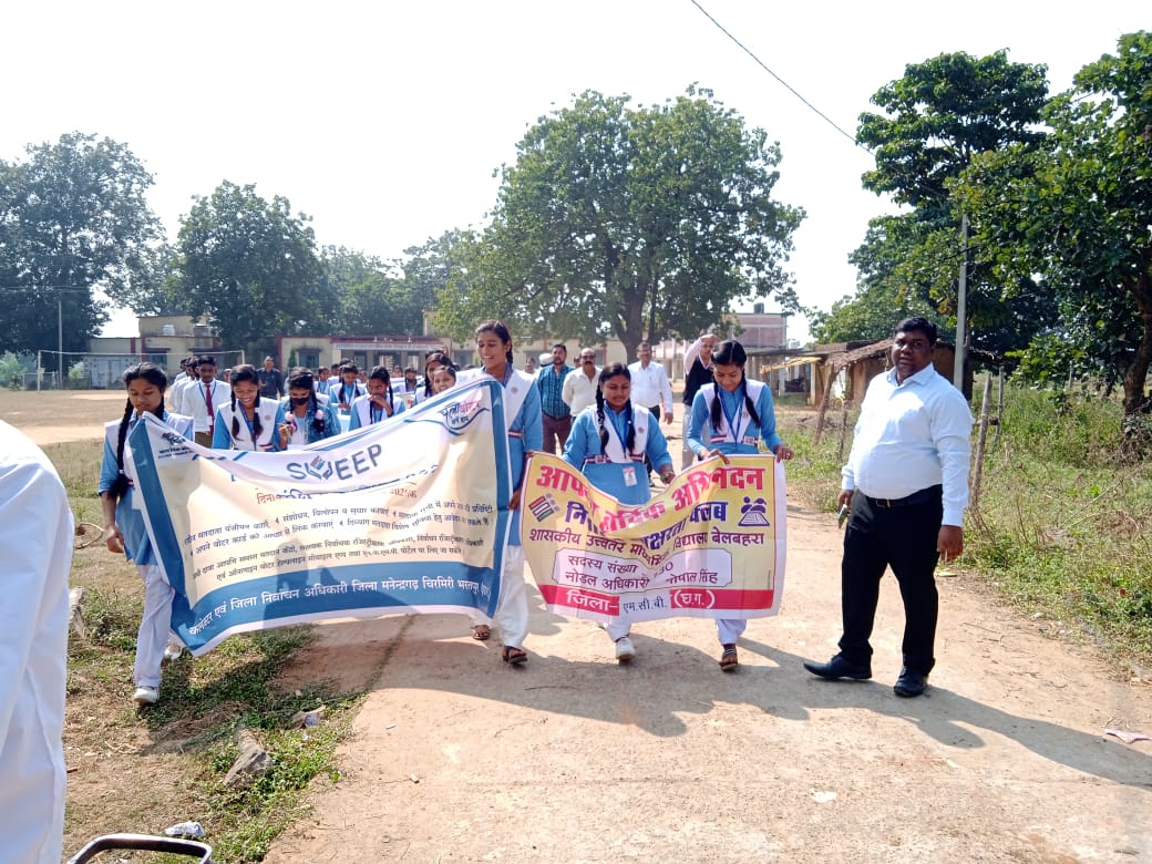 मनेन्द्रगढ़ ,09 नवंबर I भारत निर्वाचन आयोग के निर्देशानुसार एकीकृत मतदाता सूची का प्रारंभिक प्रकाशन 9 नवम्बर 2022 को किया गया है। जिसके सम्बन्ध में आज जिले में सभी विकासखण्डों विभिन्न स्थानों में मतदाता सूची में युवा मतदाताओं को नाम जुड़वाने के लिए प्रेरित करने रैली का आयोजन किया गया।विकासखण्ड मनेन्द्रगढ़ के ग्राम बेलबहरा के शासकीय हायर सेकेंडरी स्कूल में आयोजित जागरूकता रैली को कलेक्टर पीएस ध्रुव ने हरी झण्डी दिखाकर रवाना किया।