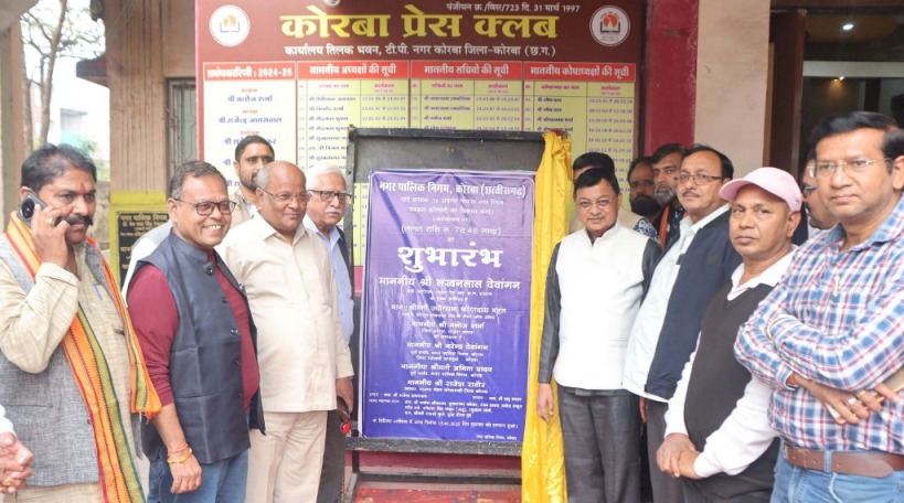 तिलक भवन प्रेस क्लब कोरबा में आयोजित भूमिपूजन कार्यक्रम में मंत्री देवांगन ने कहा कि वार्ड क्रमांक 31 गोकुल नगर पत्रकार कॉलोनी के विकास कार्य का अधोसंरचना मद के 78.48 लाख रूपए और तिलक भवन के छत मरम्मत व शौचालय निर्माण का कार्य 10 लाख के कार्यों का भूमिपूजन किया। मंत्री देवांगन ने कहा कि कोरबा के पत्रकारों के लिए पूर्व मुख्यमंत्री डॉ रमन सिंह ने खरमोरा में जमीन आबंटित की थी। अब विष्णुदेव की सरकार में कॉलोनी का विकास होने जा रहा है। इस अवसर पर प्रेस क्लब अध्यक्ष राजेन्द्र जायसवाल, कमलेश यादव, विश्वनाथ केडिया, मनोज शर्मा, मनोज ठाकुर, नागेंद्र श्रीवास समेत पत्रकार उपस्थित रहे।