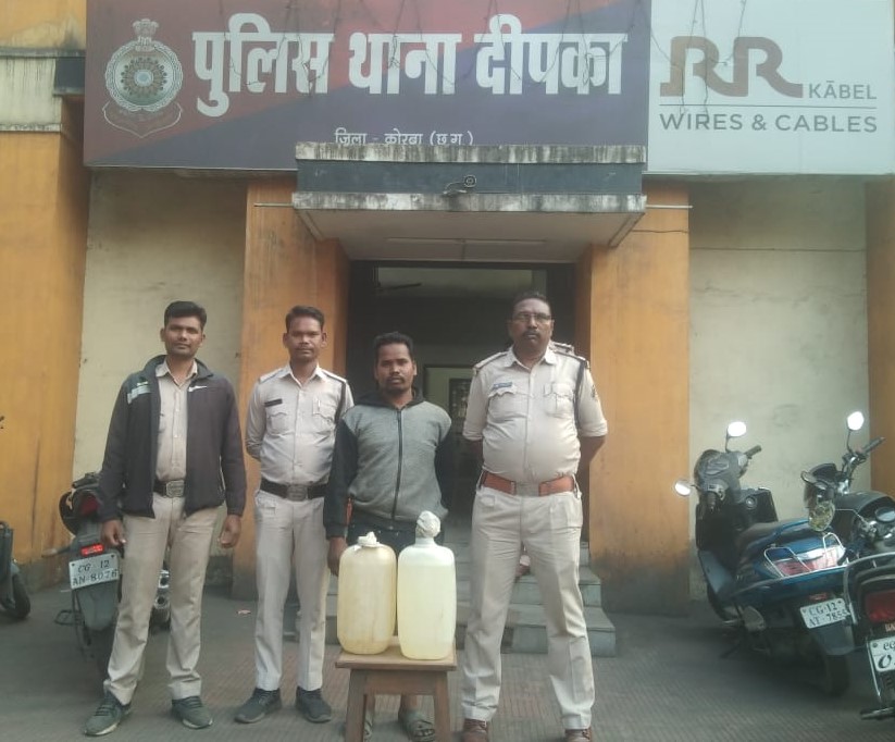 KORBA ,11 NOVEMBER I पुलिस अधीक्षक संतोष सिंह द्वारा अवैध कारोबार (अवैध मादक पदार्थ, अवैध शराब विक्री) पर अंकुश लगाने हेतु आदेश दिया गया था। दिये गये निर्देशों के परिपालन में अति0 पुलिस अधीक्षक अभिषेक वर्मा एवं नगर पुलिस अधीक्षक दर्री रॉबिनसन गुडिया” के दिशा निर्देश पर आज दिनांक 11.11.2022 को निजात अभियान के तहत जुर्म जरायम पर दिपका थाना पलीस पेट्रोलिंग पर देहात सिरकी तिवरता की ओर निकले थे कि जरिये मुखबीर सूचना मिला कि ग्राम केराकछार लोटनपारा में खेत किनारे जंगल में लोटानपारा निवासी परमेन्द्र धनुहार अवैध रूप से कच्ची महुआ शराब रखकर बिक्री करने के फिराक में हैं