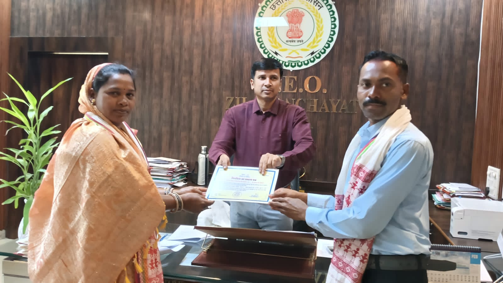 मंगलवार को जिला पंचायत के सभागार में रिटर्निंग अधिकारी एवं मुख्य कार्यपालन अधिकारी, जिला पंचायत श्री दिनेश कुमार नाग ने सर्वाधिक मत प्राप्त करने वाले प्रत्याशियों को विजयी घोषित किया और उन्हें सम्यक निर्वाचन प्रमाण पत्र प्रदान किए।