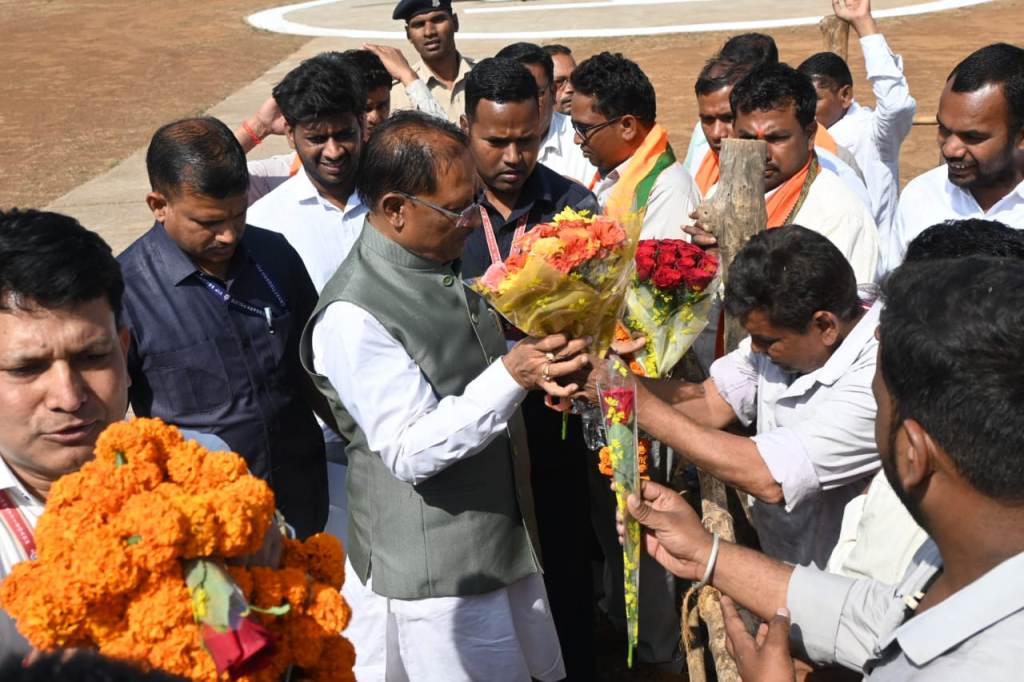 बलौदाबाजार । मुख्यमंत्री विष्णु देव साय मंगलवार को गुरू घासीदास की जन्मभूमि एवं तपोभूमि गिरौदपुरी हेलीकाप्टर से पहुंचे। उनके साथ धर्मगुरु गुरुबालदास साहेब, पूर्व विधानसभा अध्यक्ष गौरीशंकर अग्रवाल,खाद्य मंत्री दयालदास बघेल भी साथ थे। मुख्यमंत्री विष्णु देव साय का हेलीपैड पर पुलिस महानिरीक्षक अमरेश मिश्रा,कलेक्टर दीपक सोनी ,वरिष्ठ पुलिस अधीक्षक विजय अग्रवाल,डीएफओ मयंक अग्रवाल सहित स्थानीय जनप्रतिनिधियों के द्वारा गुलदस्ता भेंट कर आत्मीय स्वागत किया गया।मुख्यमंत्री साय गिरौदपुरी मेला में शामिल होने पहुंचे थे।