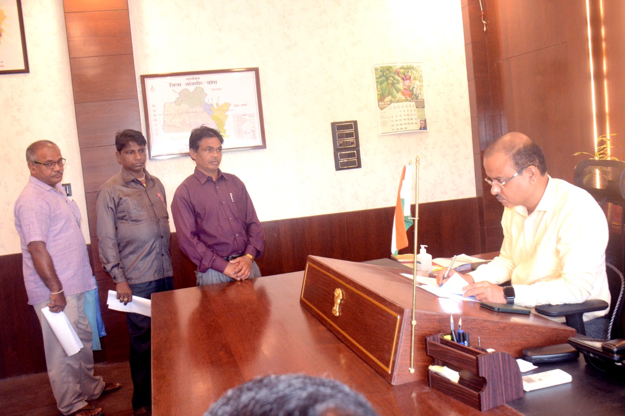 जांजगीर-चांपा,14 नवम्बर I कलेक्टर तारन प्रकाश सिन्हा ने आज कलेक्ट्रेट में जनदर्शन के माध्यम से ग्रामीणजनों की शिकायतों और समस्याओं को गंभीरता से सुना। जनदर्शन में जिले के अलग-अलग क्षेत्रों से आए लोगों ने आवेदन देकर निराकरण की मांग की। जिस पर कलेक्टर ने संबंधित विभागों के अधिकारियों को आवेदनों के निराकरण जल्द से जल्द करने के निर्देश दिए गए हैं। आज जनदर्शन में प्राप्त आवेदन में तहसील बलौदा के ग्राम कटरा निवासी परमेश्वर यादव द्वारा वन अधिकार पत्र (पट्टा) दिलाने के आवेदन लेकर आए थे।