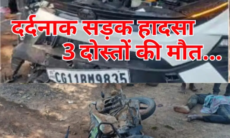 कोरबा/ दर्दनाक सड़क हादसे में तीन दोस्तों की मौके पर ही मौत होने से इलाके में मातम पसर गया है. जानकारी के मुताबिक, तीनों दोस्त बाइक में सवार होकर जा रहे थे, तभी कार और बाइक में जोरदार भिड़ंत हो गई. इस हादसे में मौके पर ही बाइक सवार तीनों युवकों की मौत हो गई. यह घटना जटगा चौकी के खोडरी के पास की है.