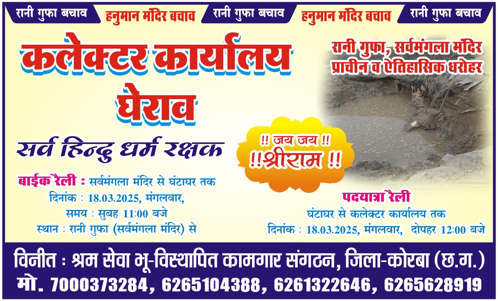 श्रम सेवा भू विस्थापित कामगार संगठन के द्वारा प्राचीन ऐतिहासिक धरोहर रानी गुफा को बचाए रखने कोरबा कलेक्टर कार्यालय का 18 को करेंगे घेराव