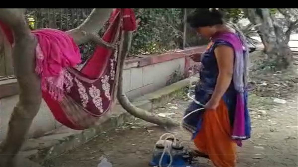 रायपुर,15 नवंबर । राजधानी रायपुर में एम्स के गेट नंबर वन के बाहर से एक मार्मिक तस्वीर सामने आई है, जहां एक मां अपने बच्चे को फुट पंप से आक्सीजन देती हुई नजर आई है। बच्चे के परिजन बताते हैं कि वो फुटपाथ पर ही रहते हैं, परिजन जमीन पर सोते हैं और बच्चे को साड़ी से बंधे पालने में सुलाते हैं। उनके बच्चे को ब्रेन ट्यूमर और ब्लड कैंसर है। वे आर्थिक रूप से काफी परेशान है, उनके बच्चे का इलाज एम्स में कराया जा रहा है। सरकार की योजनाओं का आंशिक लाभ भी उन्हें मिलता है, लेकिन परिजन परेशान हैं।