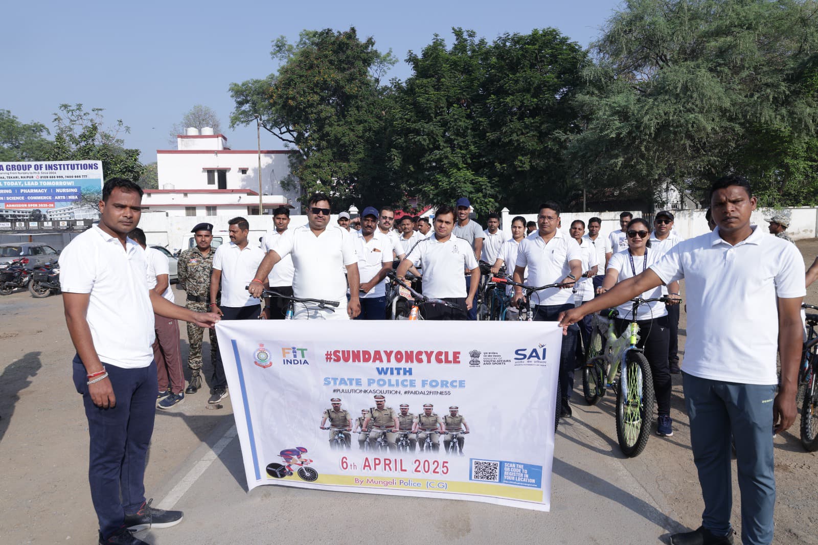 खेलो इंडिया योजना के फिट इंडिया पहल के तहत और फिटनेस को हमारी दिनचर्या मे शामिल करने के उद्देश्य से माननीय प्रधानमंत्री, भारत सरकार के मन की बात के 117वां एपीसोड मे इस अभियान को स्वास्थ्य एवं तंदुरूस्ती को बढ़ावा देने हेतू पुरे भारत में 06 अप्रैल 2025 को ‘Sunday to cycle’ का आयोजन किया गया इसी परिपालन मे मुंगेली पुलिस अधीक्षक श्री भोजराम पटेल (भा.पु.से.) के नेतृत्व मे मुंगेली पुलिस के द्वारा फिट इंडिया मिशन साइकिलिंग अभियान के तहत ‘Sunday to cycle’ का आयोजन किया गया, जिसमे अति. पुलिस अधीक्षक मुंगेली सुश्री नवनीत कौर छाबड़ा, अनुविभागीय अधिकारी मुंगेली श्री मयंक तिवारी, रक्षित निरीक्षक नरगिस खिस्ट तिग्गा बघेल, निरीक्षक कार्तिकेश्वर जांगड़े, उपनिरी. अमित गुप्ता, उपनिरी. गिरजाशंकर यादव, उपनिरी. संतोष शर्मा एवं जिला मुंगेली के पुलिस अधिकारी/कर्मचारियों द्वारा सायकल पर रेस्ट हाउस मुंगेली से दाउपारा चौक होते हुये कलेक्ट्रेड, पुलिस अधीक्षक कार्यालय तक साइकिल चलाया गया और मुंगेली पुलिस के द्वारा साइकिल चलाते हुये “फिटेनस का डोज, आधा घण्टा रोज” का नारा लगाया गया, आम जनता को फिटनेस एवं दैनिक शारीरिक गतिविधियों के महत्व के बारे मे जागरूक किया गया, कार्यक्रम दौरान पुलिस अधीक्षक भोजराम पटेल (भा.पु.से.) के द्वारा बताया गया कि साइकिल चलाना फिटनेस को दैनिक दिनचर्या मे शामिल करने के सबसे सुलभ और प्रभावी तरीकों मे से एक है जो सहनशक्ति मे वृद्धि, तनाव में कमी और हृदय स्वास्थ्य मे सुधार जैसे लाभ प्रदान करता है, प्रतिदिन सुबह लगभग 30 मिनट सायकल चलाने एवं शारीरिक रूप से फिट रहने की अपील की गई तथा साइकिलिंग में भाग लेने वाले पुलिस अधिकारी/कर्मचारियो को फिट इंडिया पोर्टल पर ऑनलाइन रजिस्ट्रेशन कराकर डिजिटल प्रमाण पत्र दिया गया।
