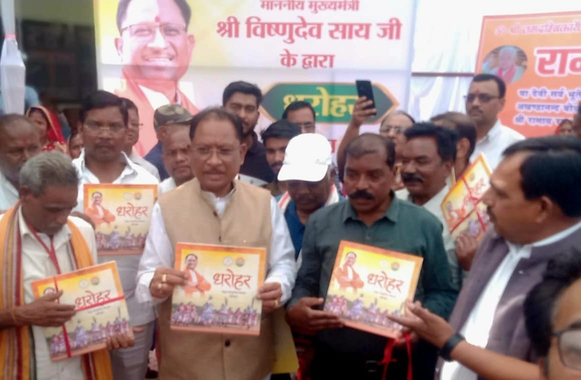 जशपुरनगर । मुख्यमंत्री विष्णु देव साय के द्वारा आज मुख्यमंत्री कैंप कार्यालय बगिया में जनजाति समाज प्रमुखों के साथ ष् धरोहर ष् पत्रिका का प्रथम संस्करण का विमोचन किया गया है। यह पत्रिका जिला प्रशासन के द्वारा प्रकाशित किया गया है।