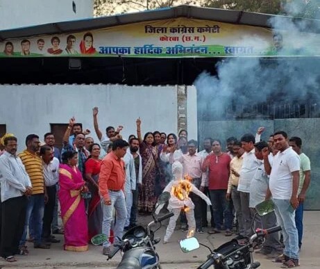 दुर्ग घटना के विरोध में जिला कांग्रेस कमेटी कोरबा ने किया गृहमंत्री का पुतला दहन